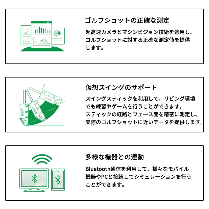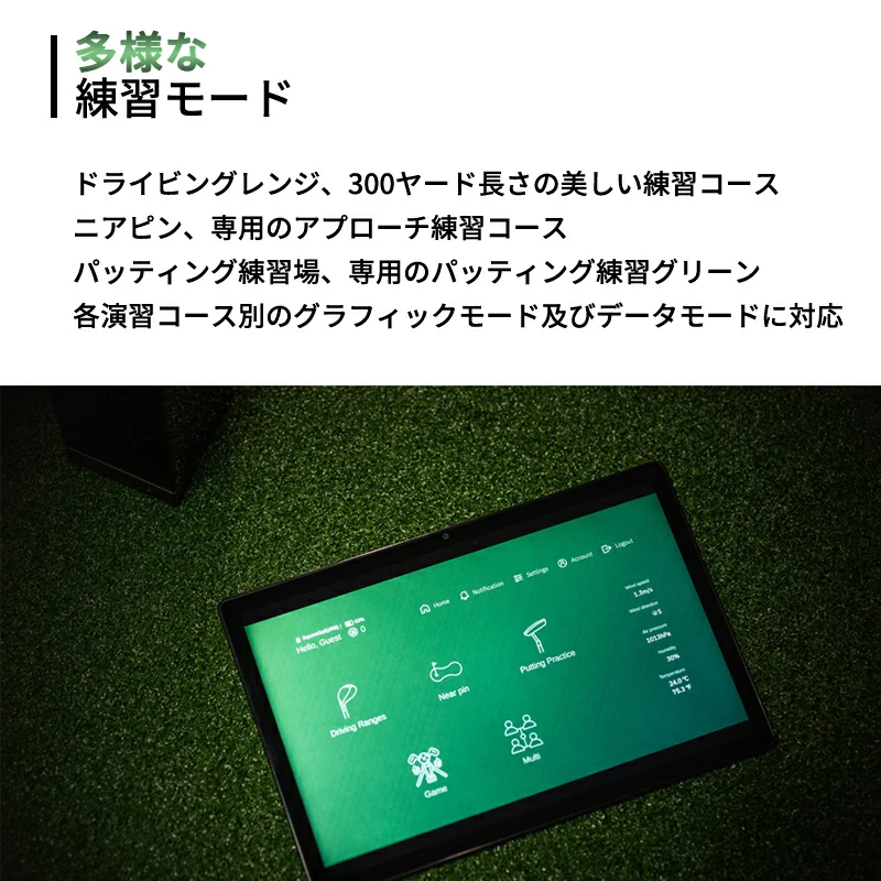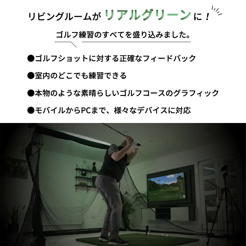 スイングスティックを利用した仮想のゴルフスイングサポート、リビングで可能なゴルフ練習とゲームの新しい世界を体験してください。